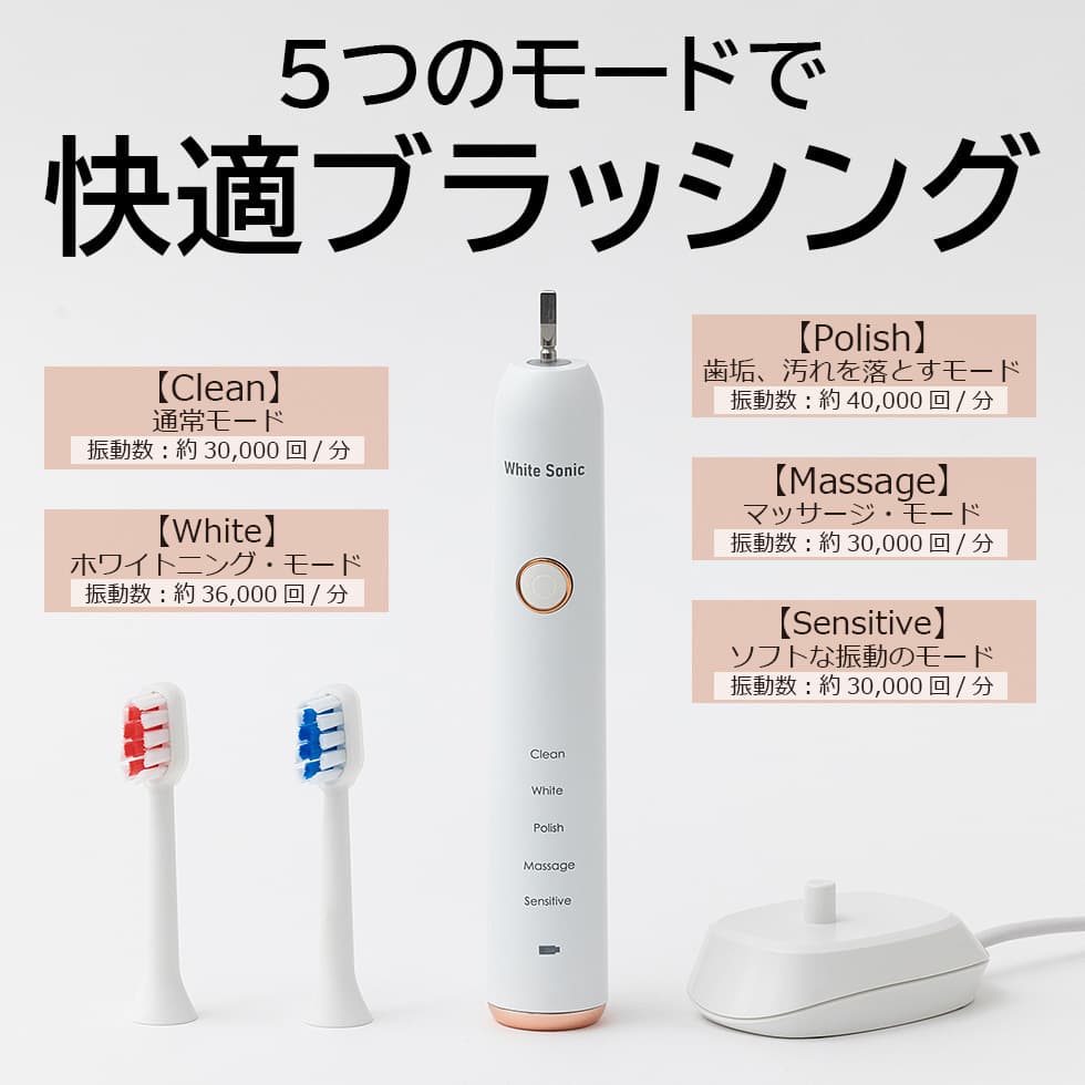 音波歯ブラシ「ホワイト・ソニック」は、毎分3万回の高速音波振動で、