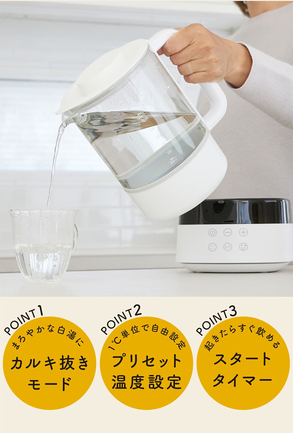 カルキ抜きモードで美味しく飲みやすい「ホンモノの白湯」を手軽に作れる