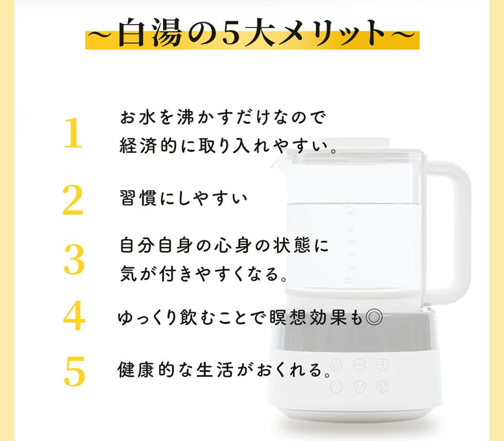 カルキ抜きモード搭載 ホンモノの白湯が作れる白湯メーカー