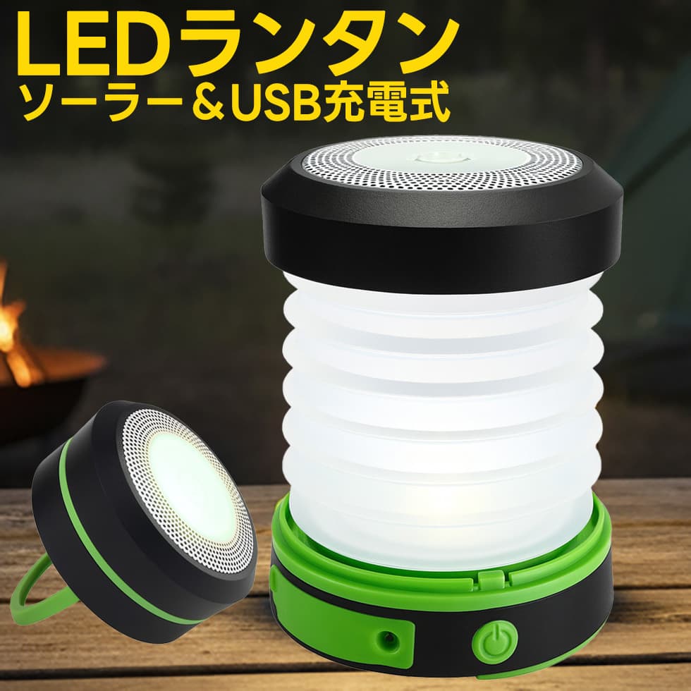 防災対策 LEDランタン 小型 ソーラーパネル付 USB 充電式