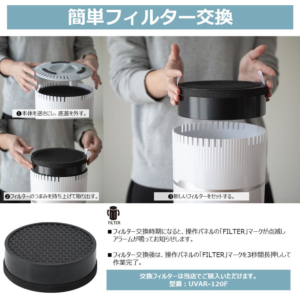 「マイナスイオン&UV-C搭載 小型空気清浄機」