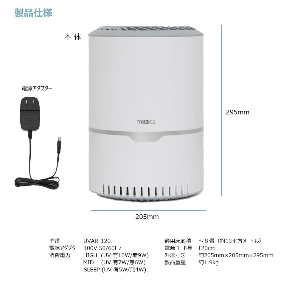 ●消費電力HIGH (UV有:10W / 無:9W)