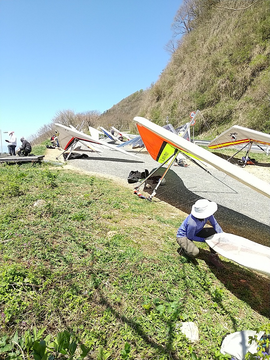 梅雨入りも週末の晴れに、12名集合!校長号とISD号で出発(^O^)/ なんでこんな高温(+_+) 校長は即下山でLDサポート専念。 TOは若干北寄り。時報を耳に「リフライト予定なんで」と一号機MSM発射!('◇')ゞ 正面からの南で『静止画』の様な(紙飛行機を投げたら無事LDしそう)…なれど続くMRHS、少し南で3連続ヒットするもそのまま高めで南の尾根へ(もったいない)それを見て続く(HSN、KRI、ISD、IDK、INUE、ISKW)もさほどのヒットならず無念(>_<) 後半の上級者に混じり新KTN、新TMR、元新KNK、無事LD。校長の指導後すぐにリフライトへ(6名と車回収の我も)出発(^O^)/ TOは1程で「がんばって走ってくれ!」と我下山(^_^)/~…(その後を教えてください(#^.^#)皆飛べた?)
