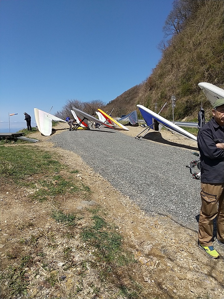 11時半過ぎには全員組み立て終わり準備完了するも 日差しが弱く、北よりの風が中心の発射しにくい状況。 30分ほどすると徐々に日も差しも出てきて 風向きもほぼ正面からから入ってくる時間が増えてきたところで 今日の1番機、MNM氏続いてISD氏と次々発射! 北の尾根まではあまり高度を落とさずにたどり付けそうなコンディション 一人二人と徐々に高度を上げ、山頂レベルまで上げてる機体も!