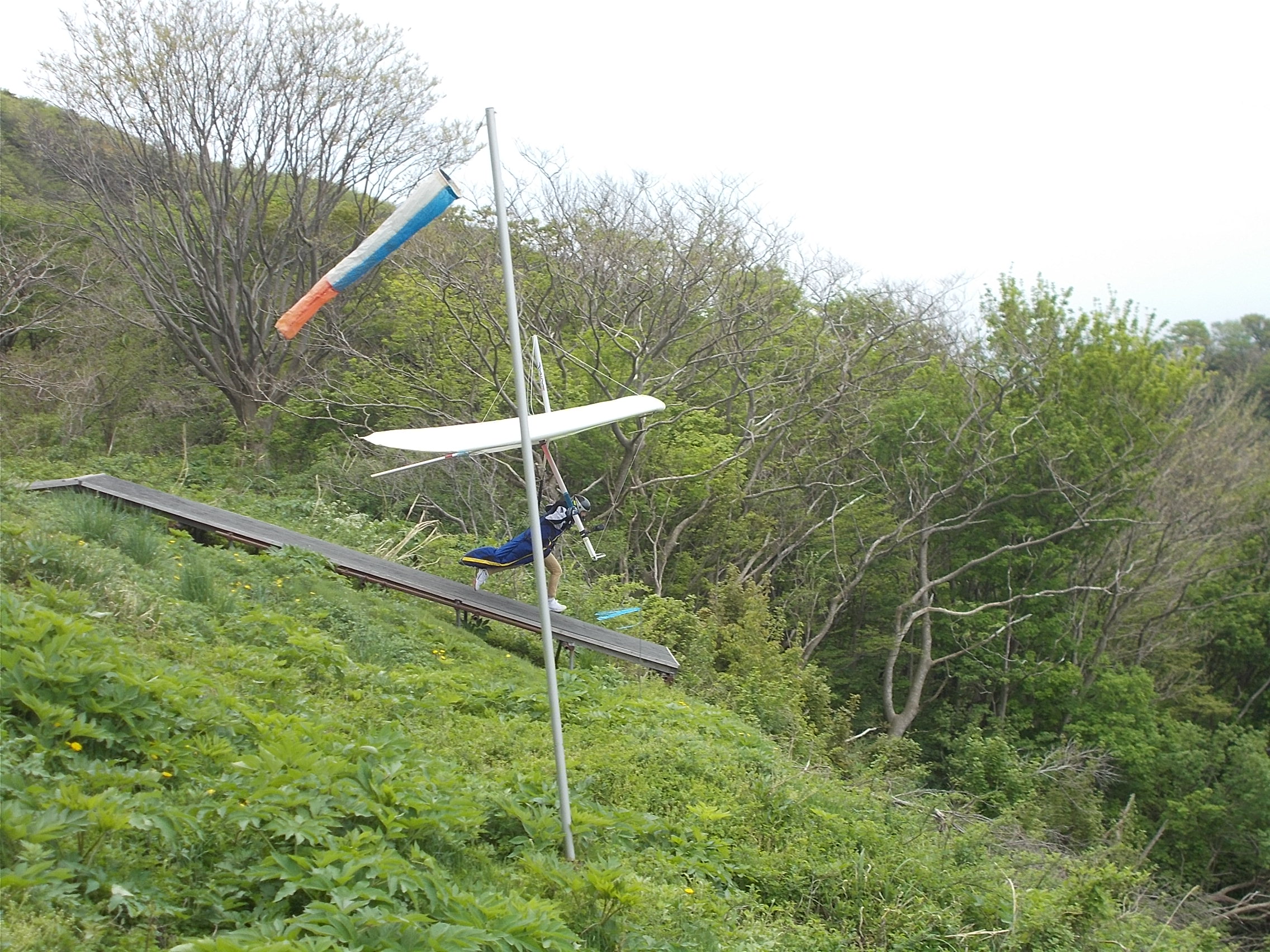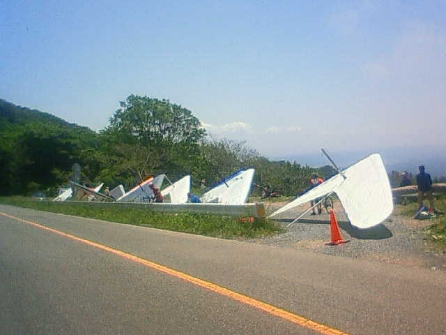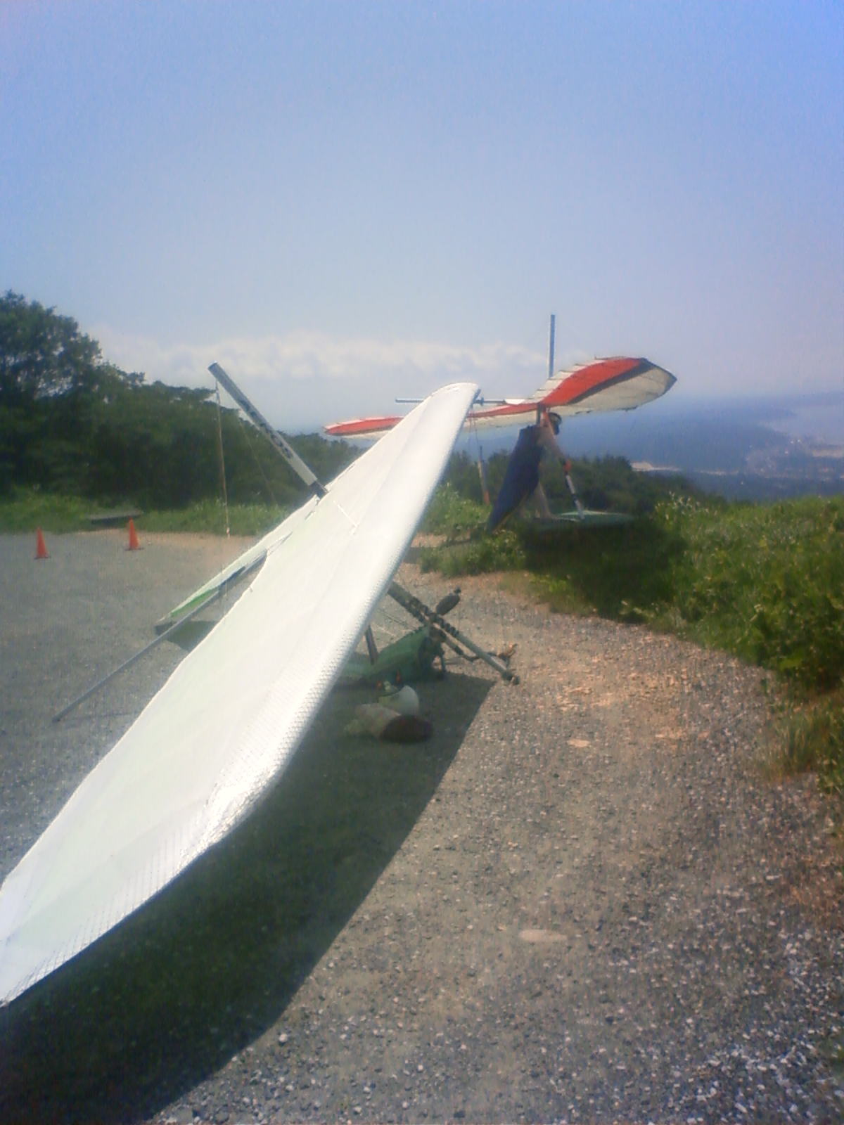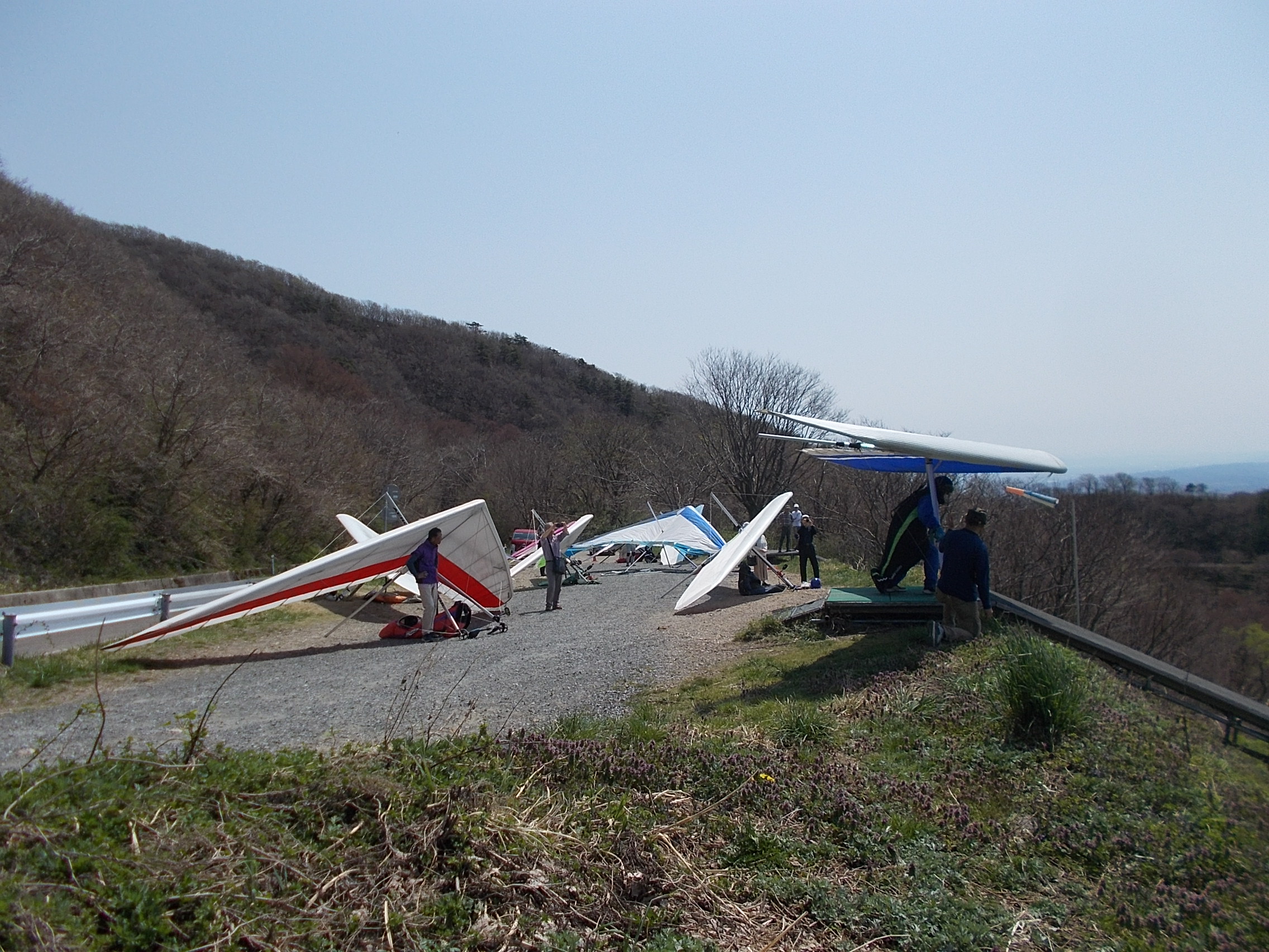 大会なのに悪条件予報で9名(ほぼ役員)集合!…ですが状況判断で競技員長が「大会中止!でフリーフライト!」宣言し『フライト希望者5』『草刈り希望者1』『サポート希望者3』それぞれの思惑で、校長号、ISD号、WSD号で出発!(^O^)/ TOいつもの到着時がベスト!曇りの中、北メインのブロー待ちで、一号機KRI発射!('◇')ゞ 弱いリフトあれど揚がらず滞空永めで北6〜7のエスカレーターランディング(^^)/ 続いて二、三、四号機同様(-_-;) ブローが弱くなりラストのATOS、2時過ぎまで待って断念(>_<)