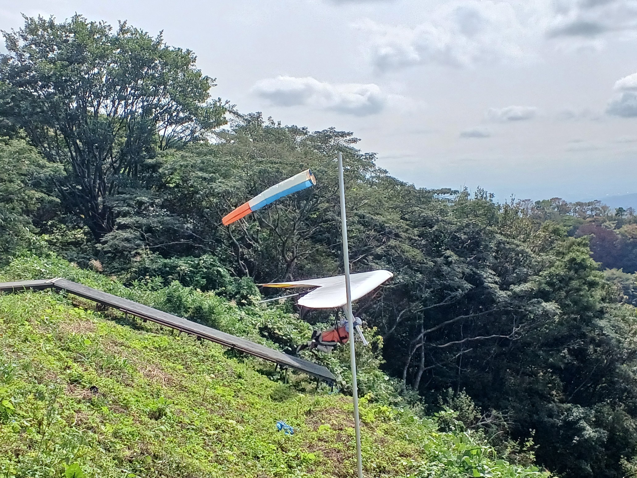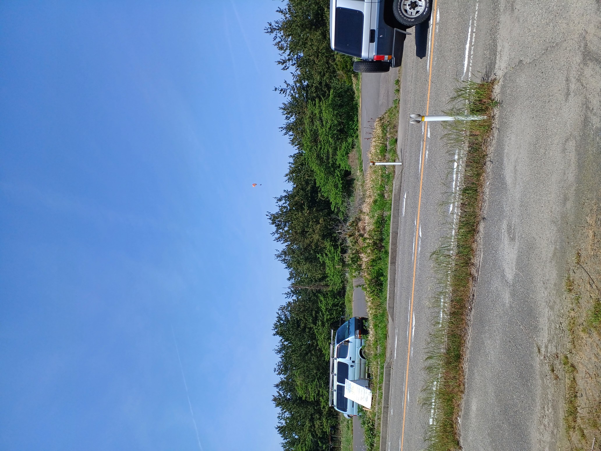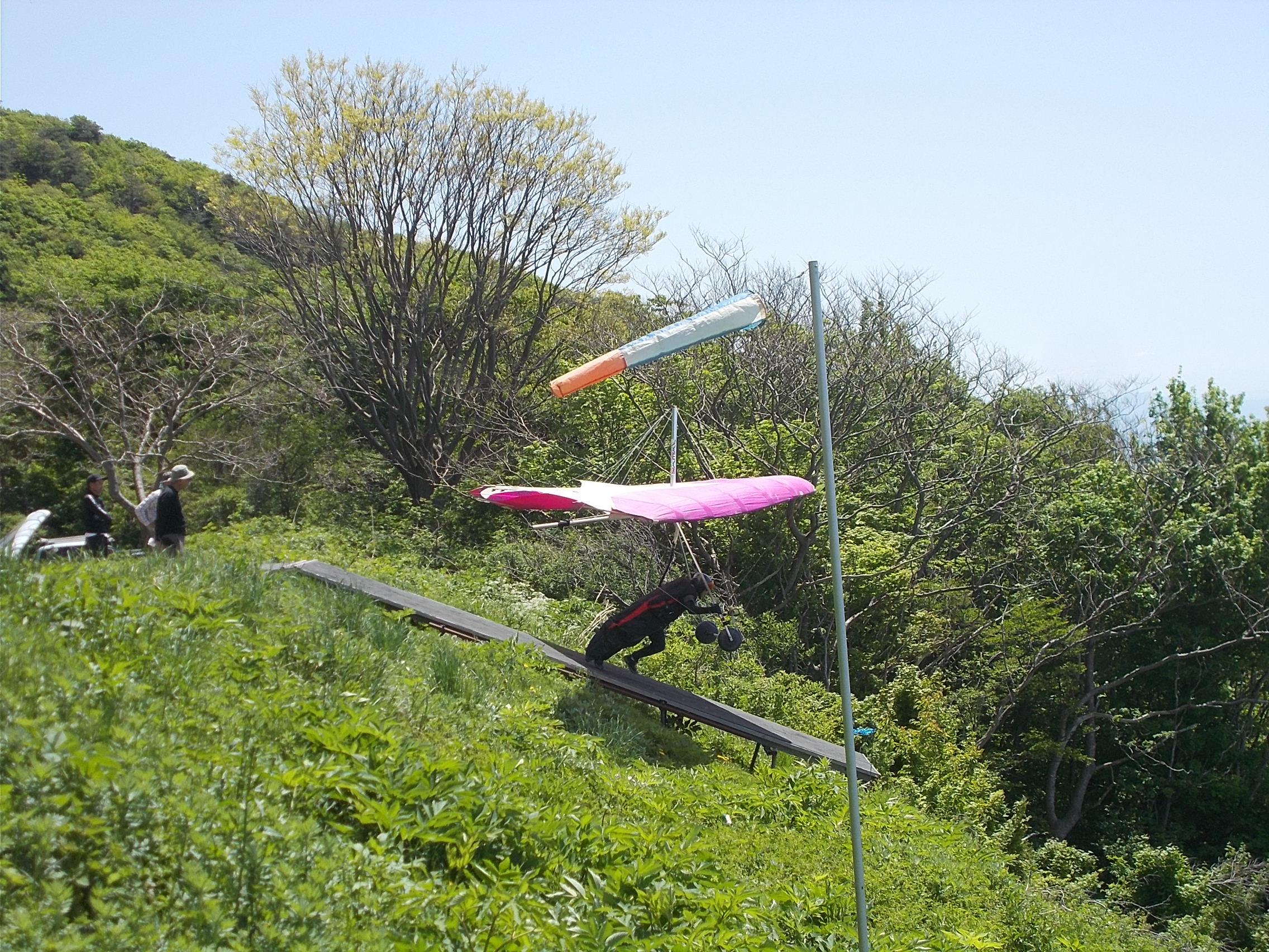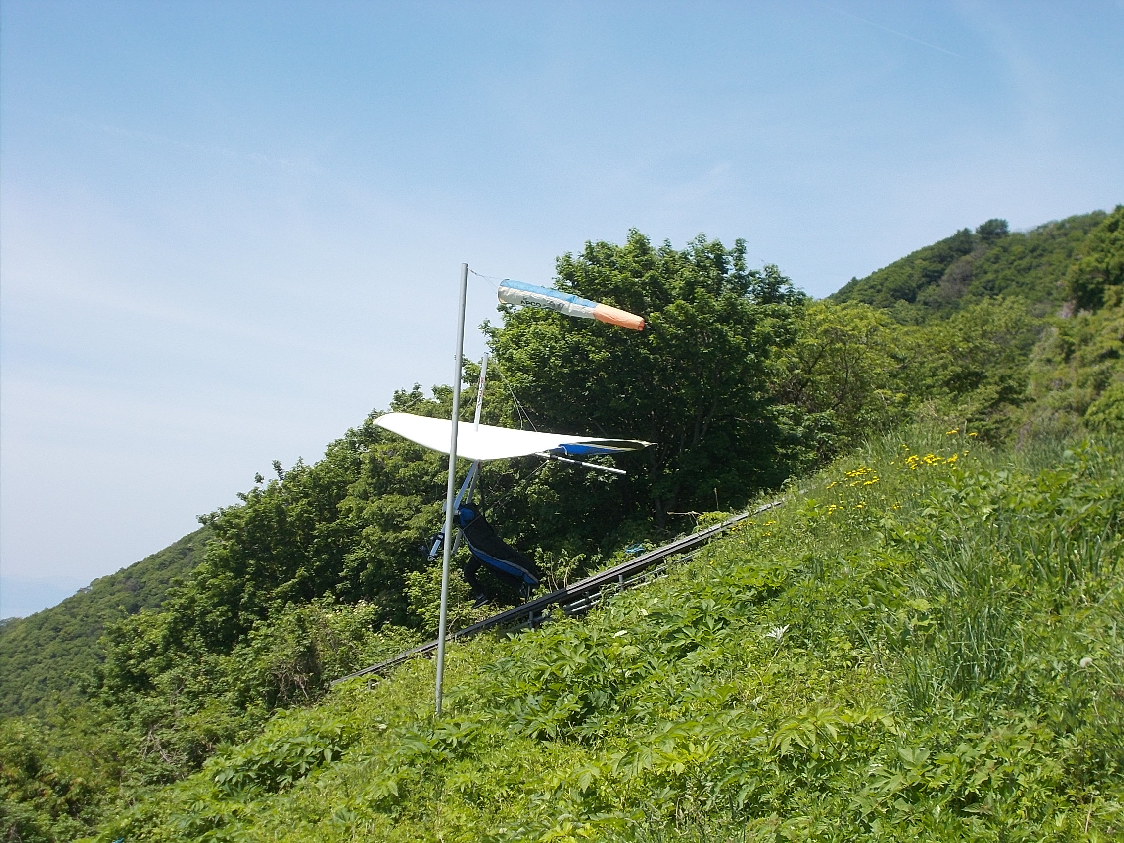 大会なのに悪条件予報で9名(ほぼ役員)集合!…ですが状況判断で競技員長が「大会中止!でフリーフライト!」宣言し『フライト希望者5』『草刈り希望者1』『サポート希望者3』それぞれの思惑で、校長号、ISD号、WSD号で出発!(^O^)/ TOいつもの到着時がベスト!曇りの中、北メインのブロー待ちで、一号機KRI発射!('◇')ゞ 弱いリフトあれど揚がらず滞空永めで北6〜7のエスカレーターランディング(^^)/ 続いて二、三、四号機同様(-_-;) ブローが弱くなりラストのATOS、2時過ぎまで待って断念(>_<)