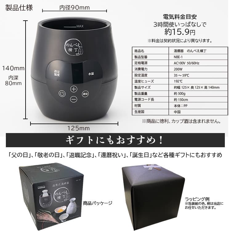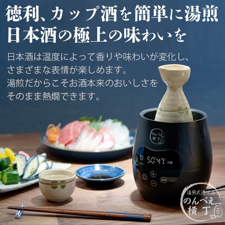湯煎で簡単に熱燗ができる「電気酒燗器 のんべえ横丁」は、日本酒の味わいを引き出し、家庭で手軽に本格的な熱燗を楽しめる製品です。