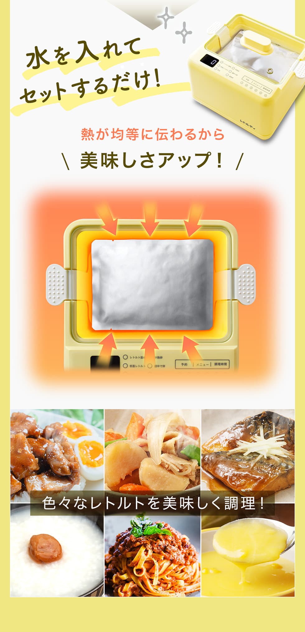 ■レトルトがさらに美味しく!湯煎で均一にしっかり温めるので、電子レンジのように熱が偏りません