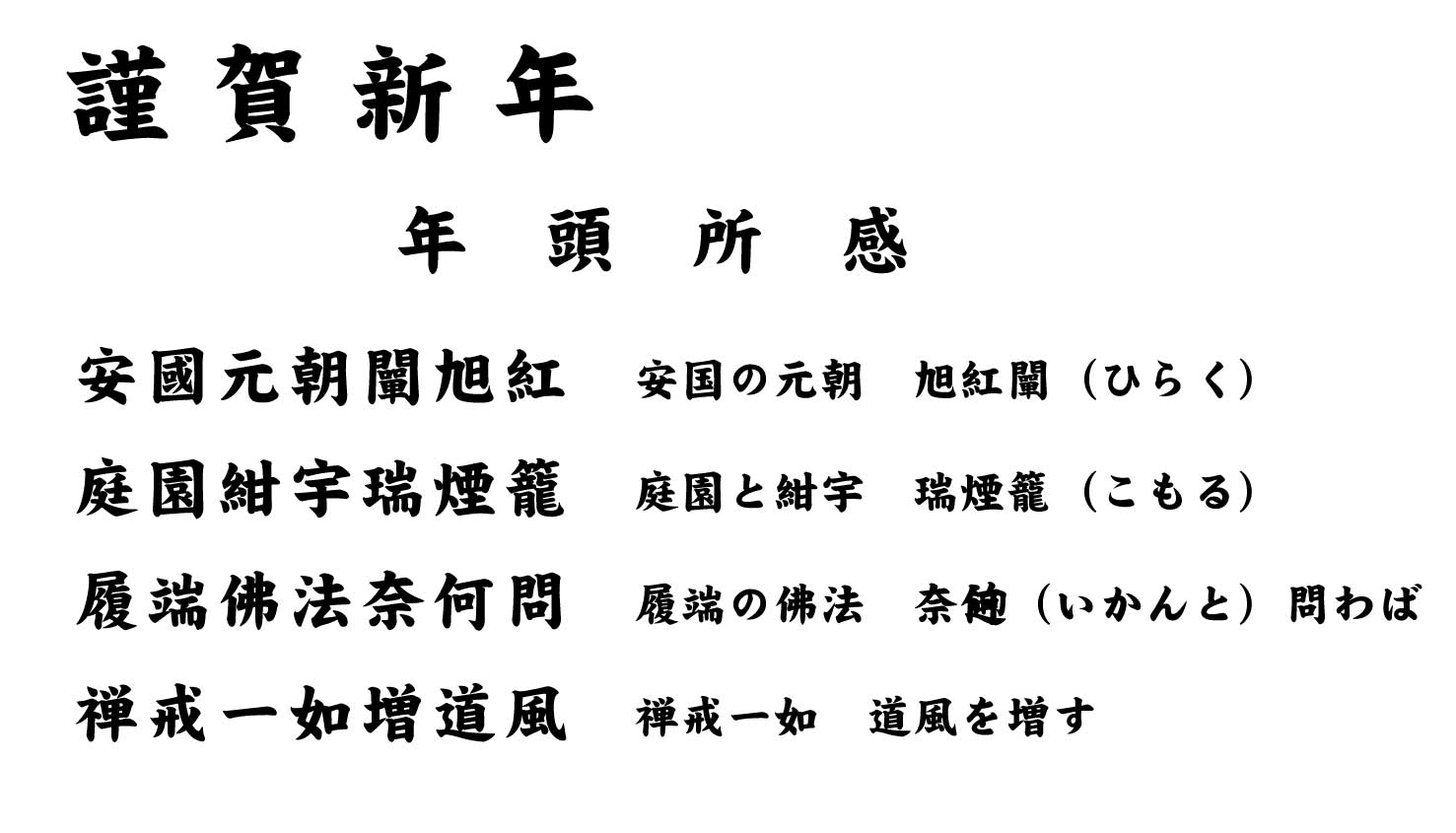 旧年中は格別なるご芳情を賜り厚く御礼申し上げます。 本年は、七月九日(木)〜十一日(土)に、第二十三回眼蔵会(坐禅を行じながら、駒澤大学教授・角田泰隆先生による『正法眼蔵』「仏性」の巻の講義)を計画しております。昨年に引き続き、寺での宿泊と応量器による飯台を行う予定です。皆様のご参加を心よりお待ち致しております。 今年も倍旧のご高配を賜りますようお願い申し上げます。