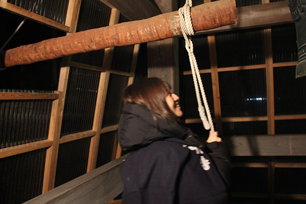 御参りの皆さんに、一回ずつ撞いて頂きます。