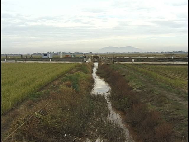 | 用水をはさみ南北に位置する。向こうに弥彦山が見える。その先は日本海! |